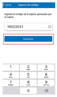 5. Ingrese el código obtenido del cajero automático en la aplicación.