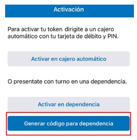 1. Descargá la app “Token” disponible para Android y iOS, y selecciona la opción “Activar en dependencia”.