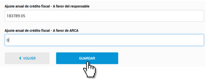 - Si el saldo producto del ajuste resulta a favor del Fisco (ARCA), el importe se deberá informar en la opción «A Favor de ARCA».
