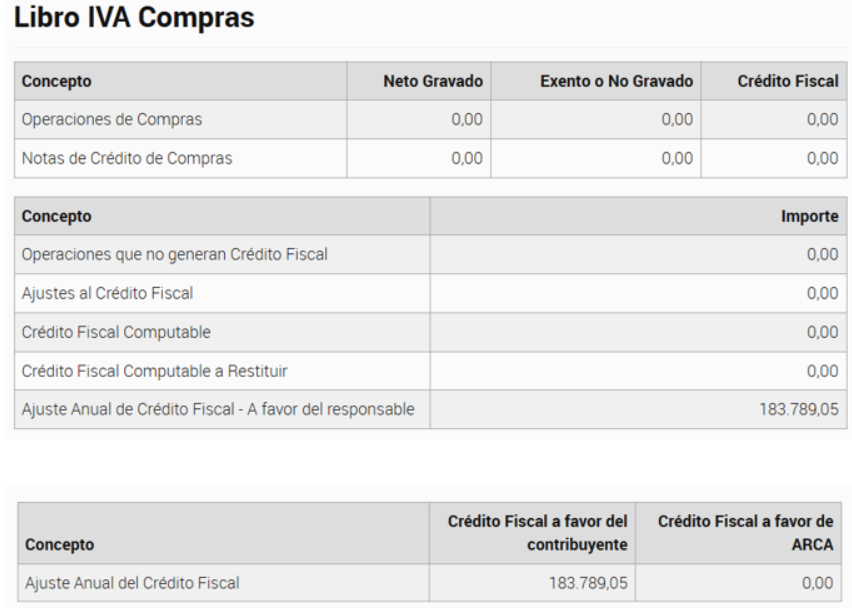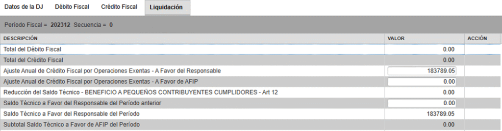 - El ajuste definitivo del crédito fiscal debe informarse obligatoriamente en el último período fiscal (diciembre en este ejemplo).