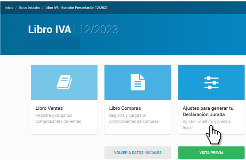- Esta carga se realiza a través del servicio «Portal IVA», utilizando la opción «Ajustes para generar tu Declaración Jurada». El sistema reflejará el ajuste final a los fines de la declaración jurada.